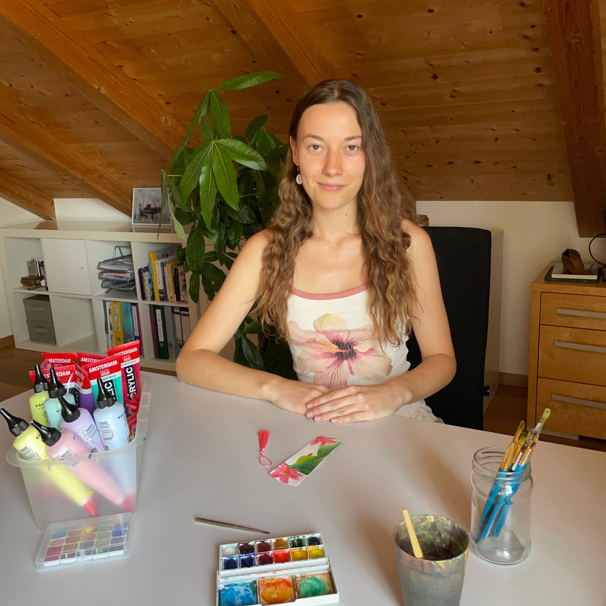 Ich bin eine Künstlerin aus Bayern. In meiner Kunst spiegelt sich die lebendige, atmende Natur wider – die Kraft, die in uns allen steckt, das göttliche „Ich“. Auf meiner Lebensreise habe ich viele wundervolle Geschöpfe getroffen – Pflanzen, Tiere und Menschen – deren Energie ich in meinen Bildern zu verewigen versuche.